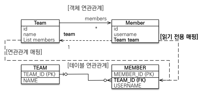 예를들어 team.setMembers같은 메서드를 쓸때 TEAM 테이블이 아닌 MEMBER 테이블에 update쿼리가 나가는등 코드의 일부분만 봐서는 쿼리 예측이 쉽지 않게 된다.