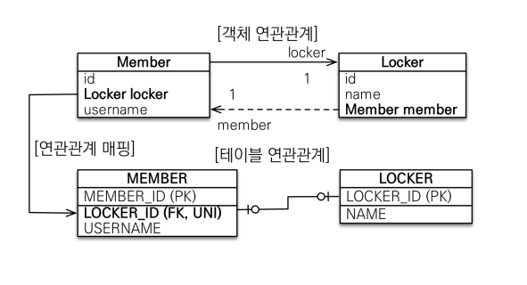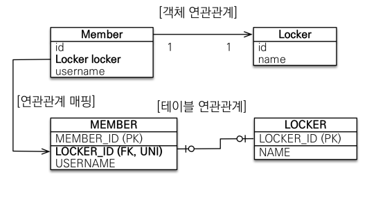 먼저 대상 테이블(LOCKER)에 외래키가 있는 경우 Member(Member.locker)를 연관관계의 주인으로 일대일 단방향 매핑을 하는 방법은 없다.
