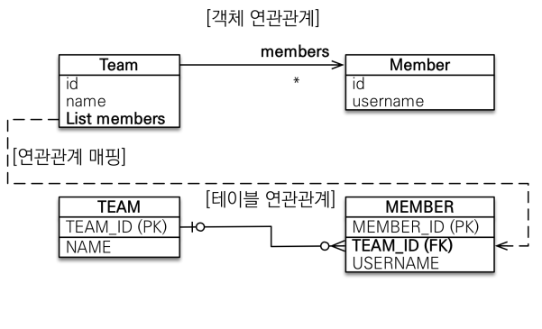 여기서 Team 객체를 통해서도 Member와의 관계를 알고 싶으면 양방향 연관관계를 걸어주면 된다.